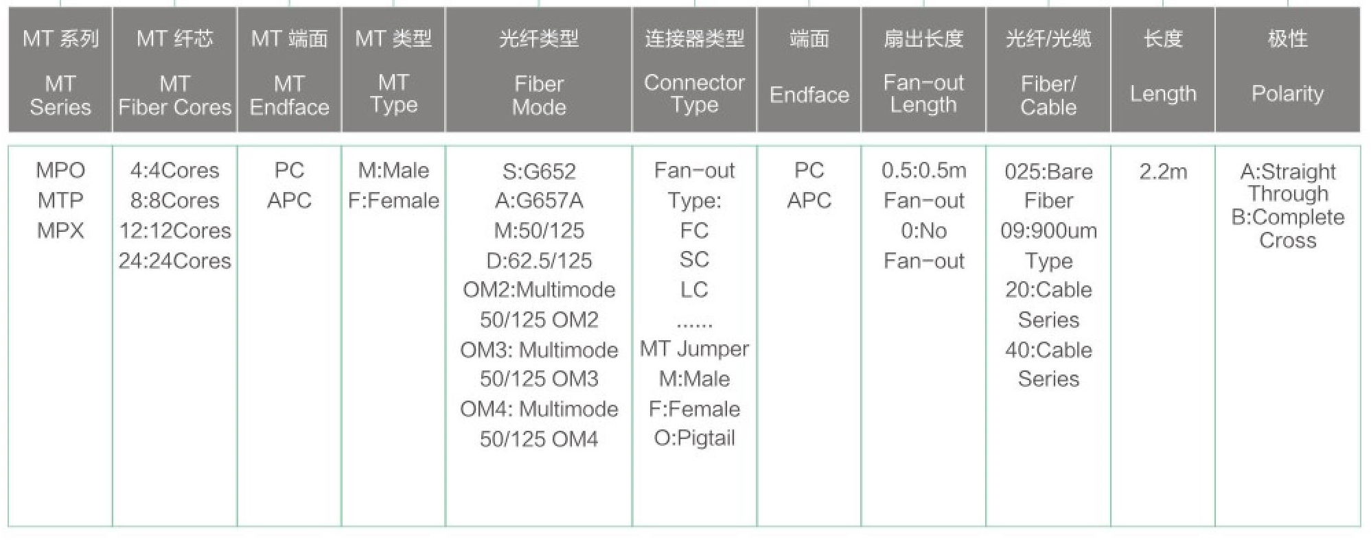 公司可提供各種類型和結(jié)構(gòu)的MPO組件及跳線,產(chǎn)品所有MT插芯及散件全部采用進(jìn)口元件