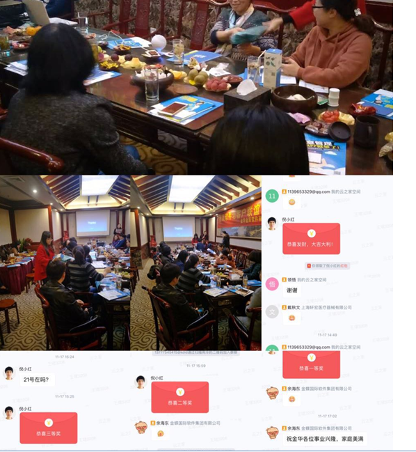 兩點(diǎn)四十,小伙伴們都到的差不多啦,金辰軟件的副總經(jīng)理倪小紅開場(chǎng)給大家做了活動(dòng)說(shuō)明,強(qiáng)調(diào)活動(dòng)的意義,同時(shí)感謝客戶的積極參與,接下來(lái)由金蝶國(guó)際軟件集團(tuán)有限公司溫州金華的云之家分銷管理經(jīng)理周泠周老師介紹了一下云之家,還有金蝶國(guó)際軟件集團(tuán)有限公司溫州金華片區(qū)的總監(jiān)余海東余老師介紹了云之家基于kis產(chǎn)品的請(qǐng)應(yīng)用,最后由金辰kis事業(yè)部的徐春蓮介紹了KIS云專業(yè)版15.0的新增功能。在此期間穿插了有獎(jiǎng)問(wèn)答和抽獎(jiǎng)的環(huán)節(jié)。