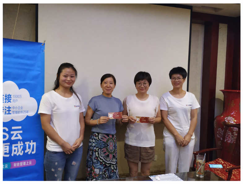短暫的休息過后,由金華市金辰軟件公司王珺女士詳細解讀云普惠的優(yōu)惠政策??蛻魪膬r格上直接感受到云產(chǎn)品的優(yōu)勢,開展熱烈討論。 這一環(huán)節(jié)結(jié)束后,由王珺女士抽出兩個二等獎,一一為客戶送上獎品。