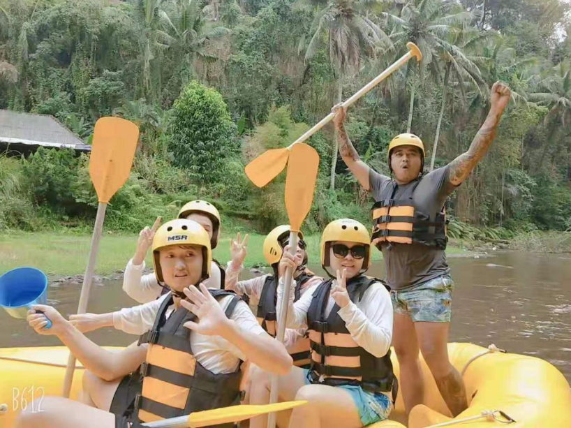 據(jù)說巴厘島自費(fèi)水上活動(dòng)首推的是著名漂流阿勇河,阿勇河長(zhǎng)11公里,流經(jīng)上有22處急流點(diǎn),兩岸均是原始森林的變換景象。水比較小,刺激程度一般,但可以欣賞到絕佳的熱帶雨林風(fēng)景和瀑布。我們的小伙伴這水仗打的那時(shí)相當(dāng)過癮~~