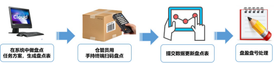 倉庫做好盤點準備后,手持射頻感應PDA設備,在倉庫轉一圈,自動感應倉庫產品信息、產品數(shù)量,提交后自動完成盤點數(shù)據(jù),盤點完成。