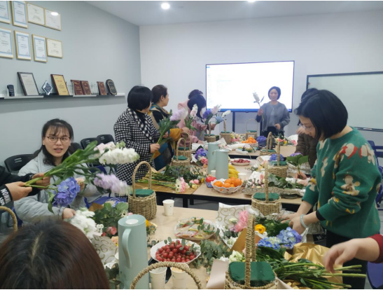 每一位女神都沉浸在自己的花藝世界,她們的認(rèn)真勁兒一點(diǎn)也不輸給專業(yè)花藝師?;顒?dòng)新穎而有趣,現(xiàn)場(chǎng)的氛圍融洽而歡樂(lè)。在一片花海中,參加活動(dòng)的每位女神臉上都洋溢著滿足和喜悅的笑容,沉浸在其樂(lè)融融的氣氛里。
