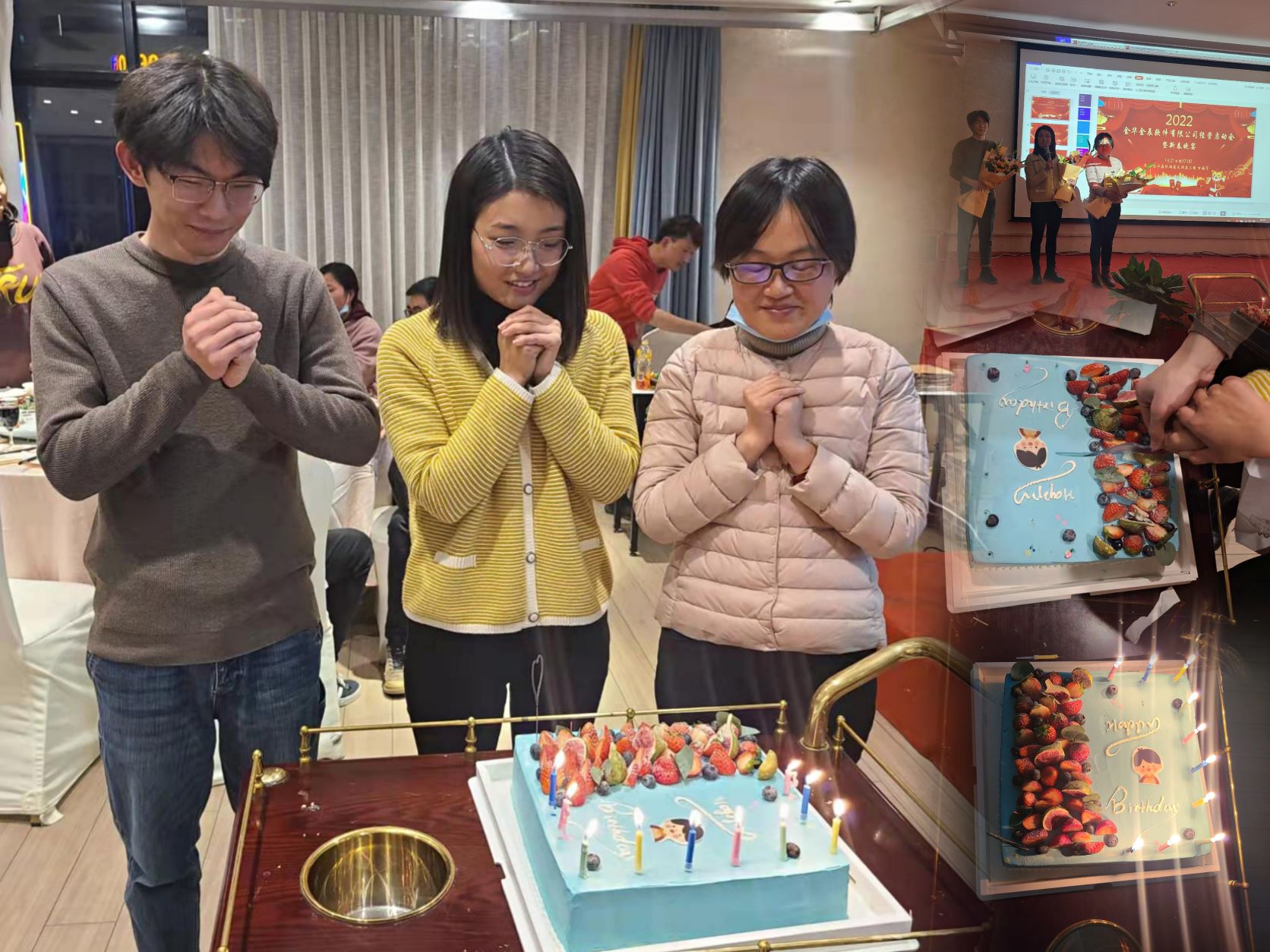 在辭舊迎新的一月份,公司為三位壽星安排了一個(gè)特別的生日會(huì),隨著緩緩?fù)迫霑?huì)場(chǎng)的蛋糕,三位壽星在大家的歌聲中許下愿望,把年會(huì)推上了一個(gè)新的“小高潮”。
