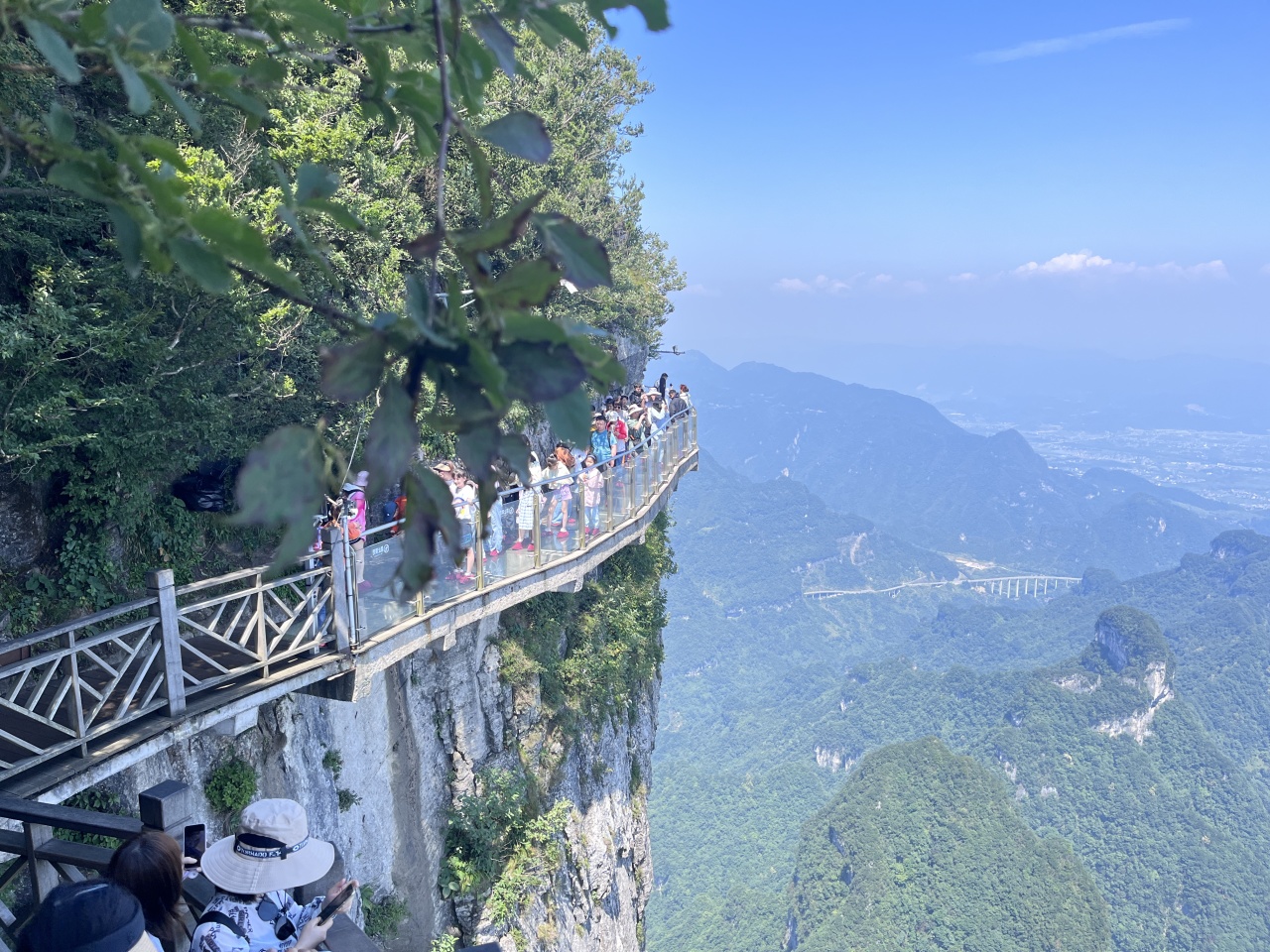 第四天,驅(qū)車前往張家界新傳奇——天門山,這里集奇、特、神與一體。大家乘坐世界最長(zhǎng)的單線循環(huán)式高山客運(yùn)索道奔赴山頂,一步登天,舉世無(wú)雙,俯瞰張家界全景,感嘆九曲通天的空中花園;大小朋友一起踏上懸空玻璃棧道,體驗(yàn)高空極限;天門洞讓人感受到了大自然的鬼斧神工,無(wú)詞形容,唯有壯觀。