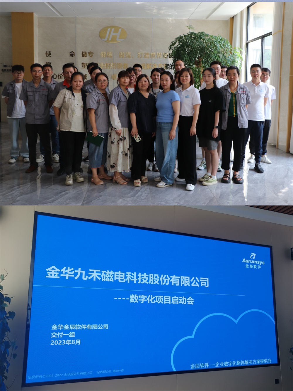2023 年 8 月16 日,金華金辰軟件有限公司(以下簡稱金辰軟件)與金華九禾磁電科技股份有限公司(以下簡稱九禾磁電)共同舉辦的數(shù)字化啟動會在金華磐安圓滿完成。這次會議標(biāo)志著九禾磁電數(shù)字化轉(zhuǎn)型邁出了重要的一步,同時也展示了金辰軟件助力企業(yè)數(shù)字化升級的強(qiáng)大實(shí)力。